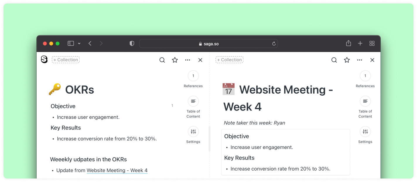 Saga unterstützt das Öffnen von zwei Seiten direkt nebeneinander.