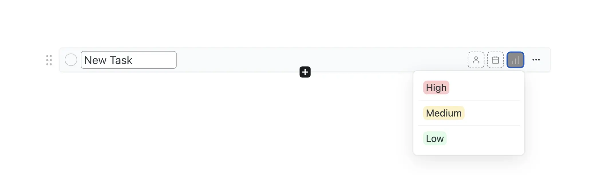Das Festlegen einer Priorität für Aufgaben ist optional, kann aber bei der Bestimmung ihrer Wichtigkeit helfen. Um die Priorität einer Aufgabe hinzuzufügen oder zu ändern, bewegen Sie den Mauszeiger darüber und wählen Sie das Prioritätssymbol auf der rechten Seite aus. Sie können zwischen „Hoch“, „Mittel“ und „Niedrig“ wählen oder die Standardeinstellung „Keine Priorität“ belassen.