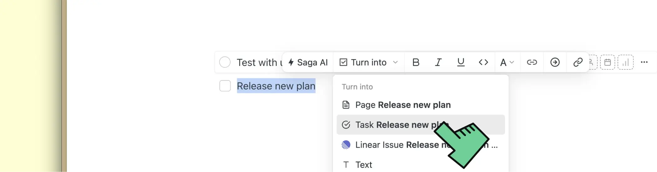 - Wählen Sie Text oder einen Block aus und konvertieren Sie ihn in eine Aufgabe.