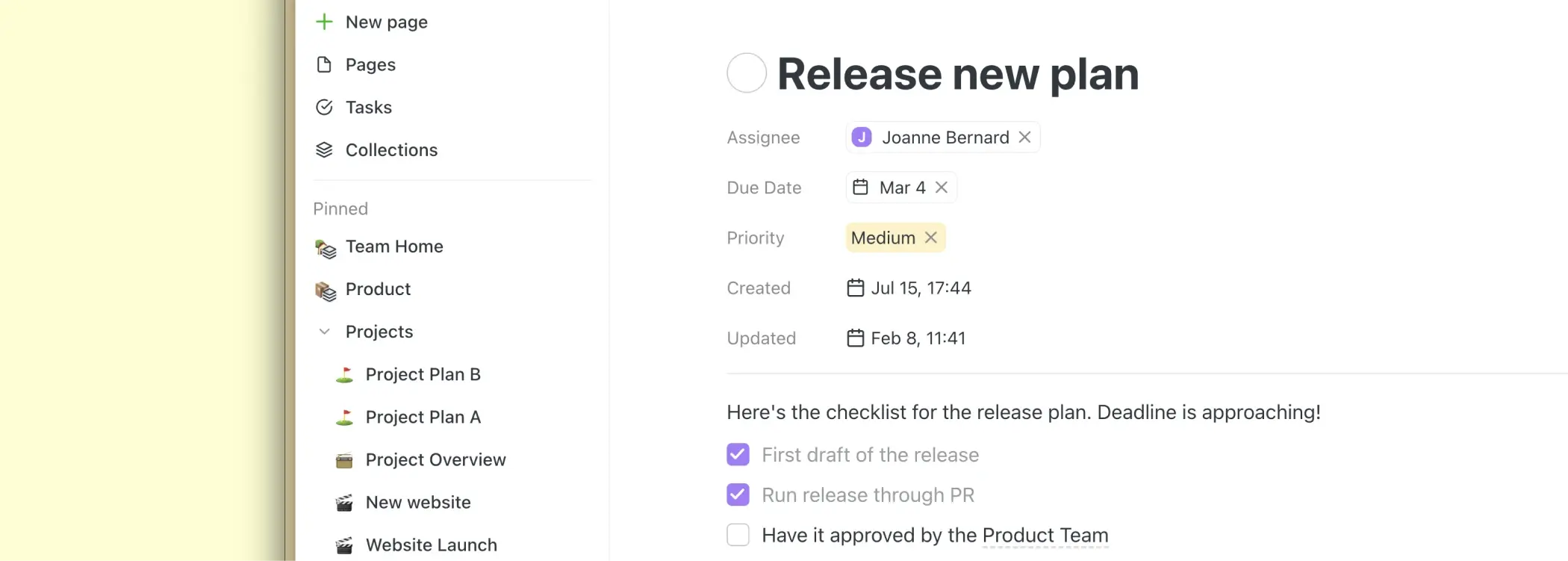 Sie können schnell Aufgaben auf verschiedenen Seiten erstellen, sie Kollegen zuweisen und sie alle effizient von einem Ort aus verwalten.
