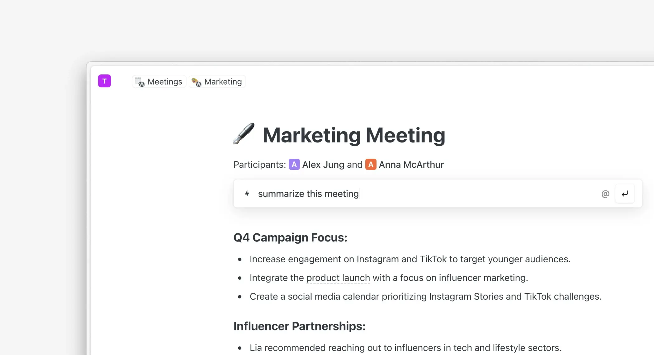 - Nach mehreren Seiten fragen (z. B. „Was haben wir in unseren letzten 3 Meetings besprochen?”)
