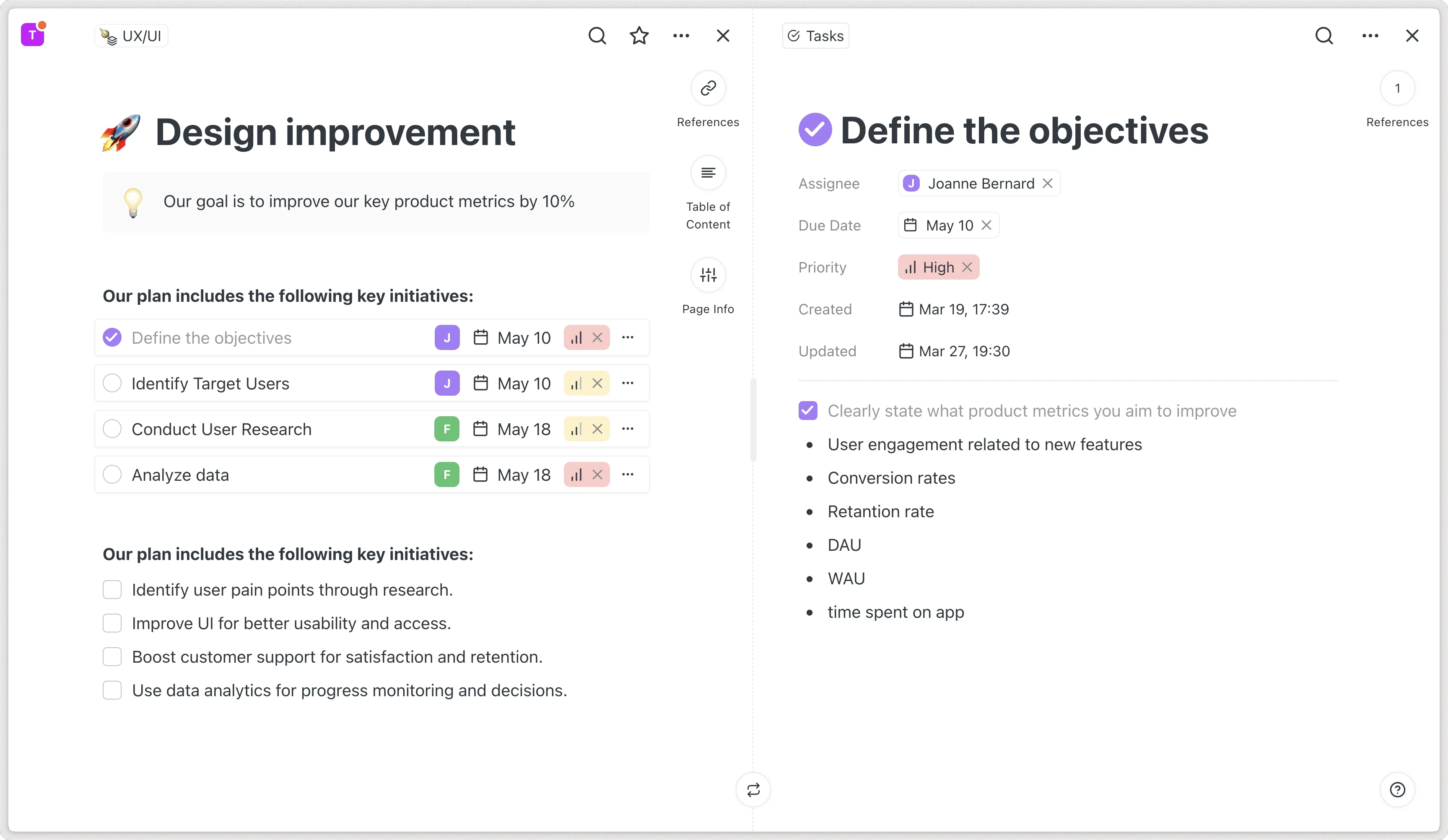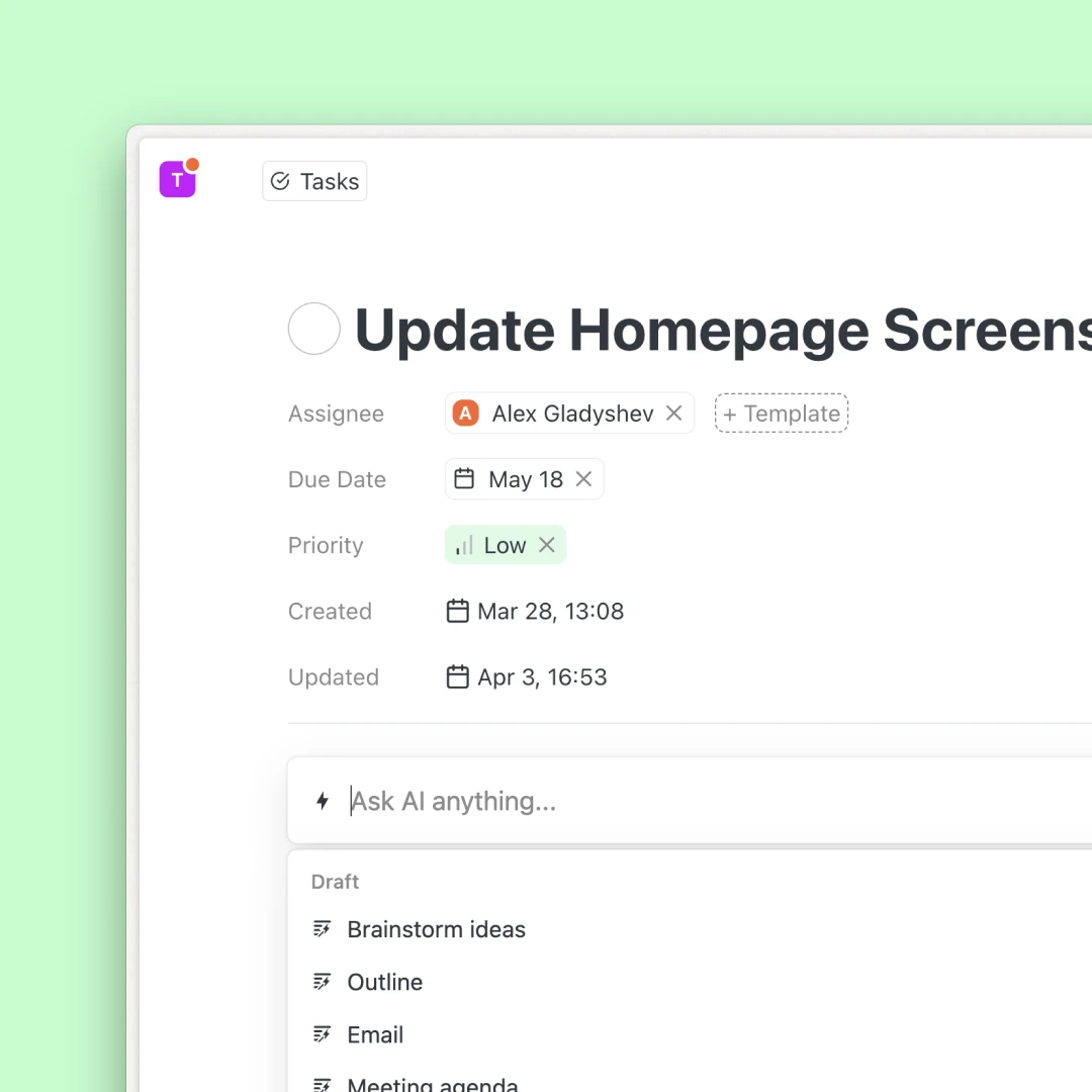 Vereinfachen Sie die Kommunikation und verwalten Sie Ihre Projekte einfacher. Verbinde deine Aufgaben, Notizen, Dokumente und Personen automatisch.