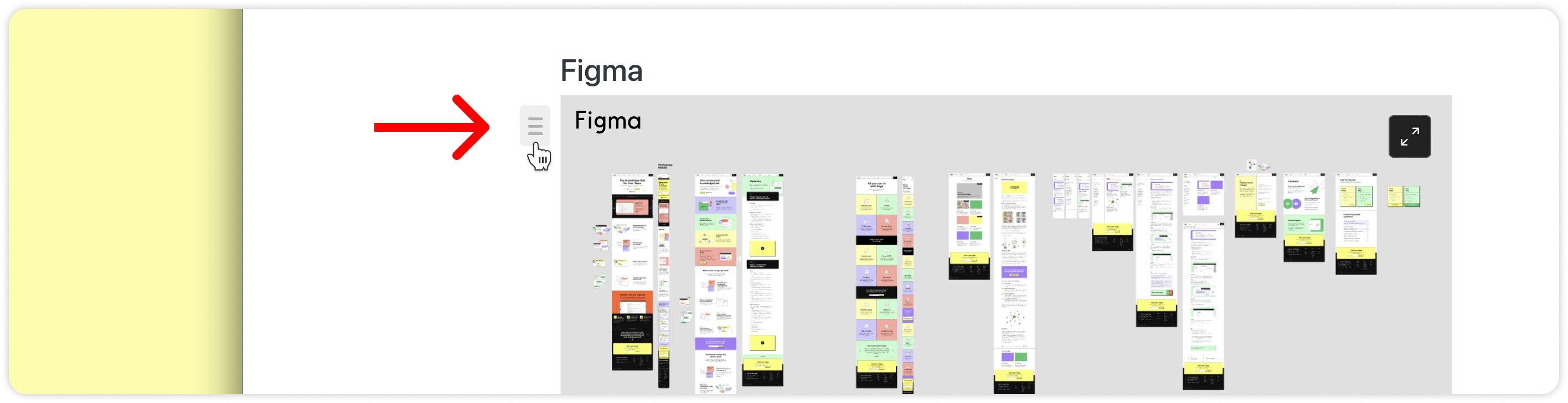 Haga clic y mantenga pulsado el ≡ icono a la izquierda de la incrustación para moverla por la página o arrastrarla y soltarla en otra página abierta en una vista paralela.