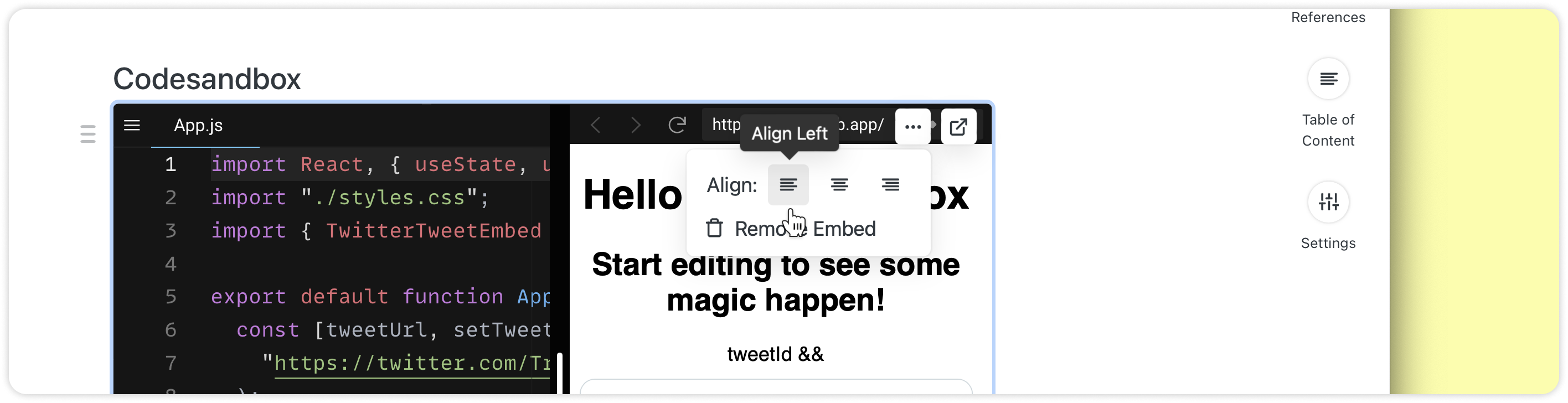 Puedes cambiar el tamaño de las incrustaciones para darles un mejor formato en tus páginas. Primero, coloca el ratón sobre la incrustación y, a continuación, arrastra la barra gris oscuro que aparece en el lado derecho de la incrustación.