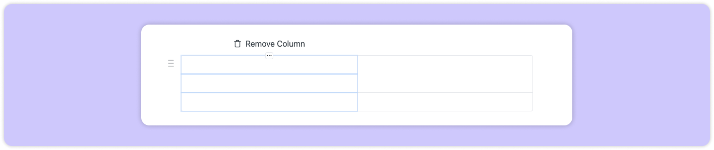 Pase el ratón sobre una celda de la tabla y haga clic en el botón del menú contextual situado encima de la columna. Haga clic en el **Eliminar columna ** botón para eliminar una columna.