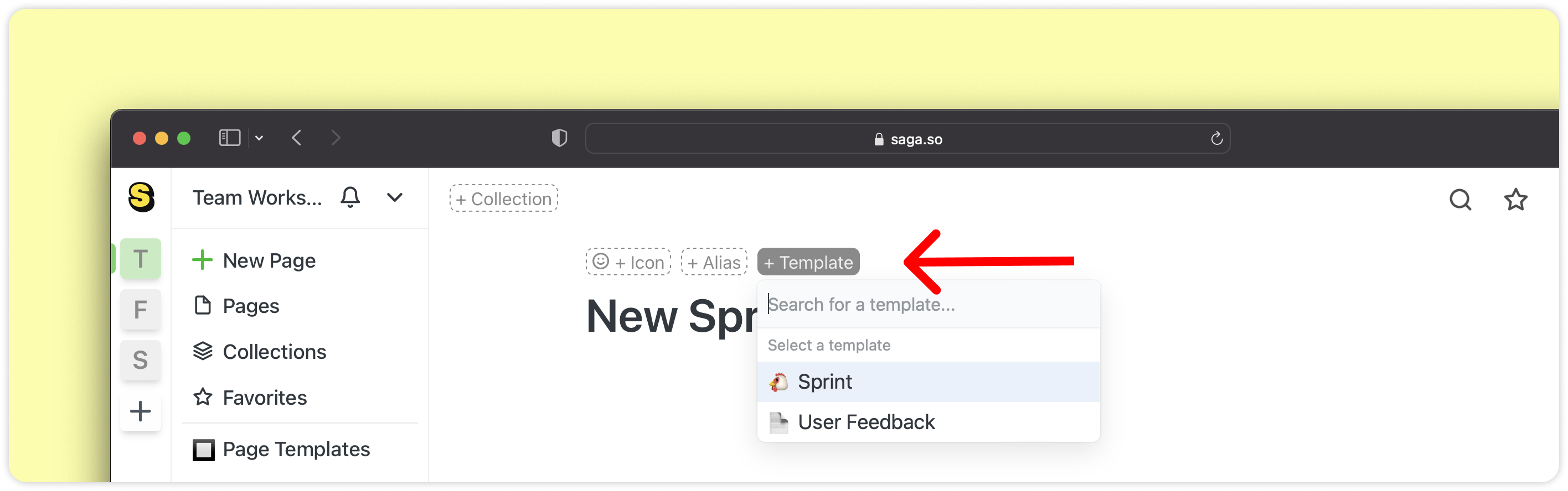 💡 Consejo — Puedes convertir cualquier página existente en una plantilla y predefinir sus colecciones y el icono de la página.