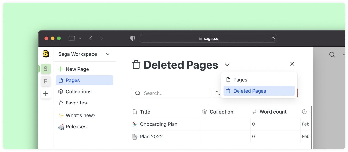 Previsualiza y revierte a versiones anteriores de tus páginas y tareas. Saga guardará automáticamente una versión de tu contenido cada pocos minutos. Más información.