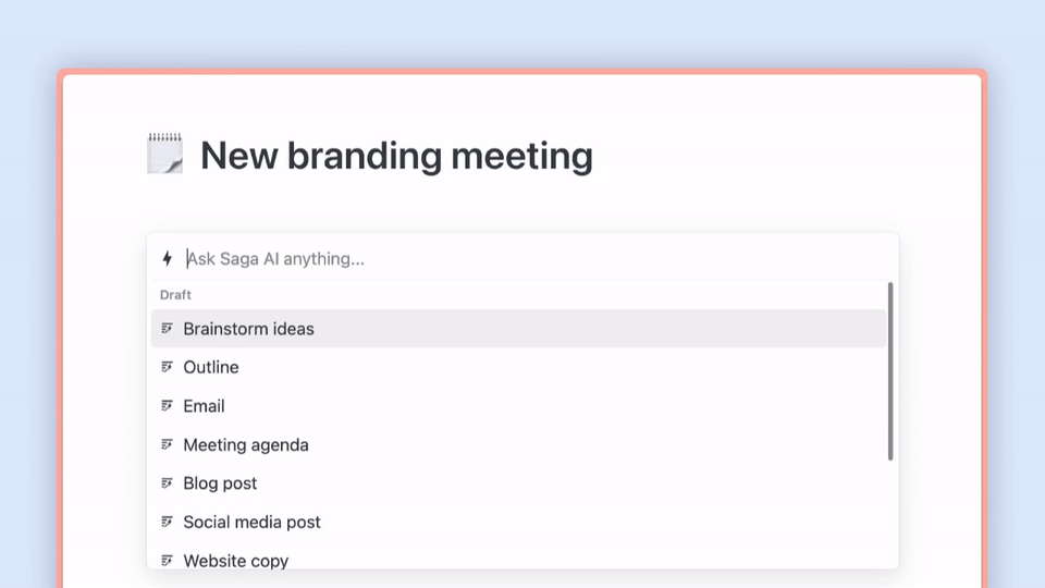 Hemos mejorado las listas contraíbles en Saga. Crea un punto de viñeta contraído haciendo clic en el ícono de viñeta. A diferencia de otros servicios, cada viñeta en Saga puede contraerse o expandirse.