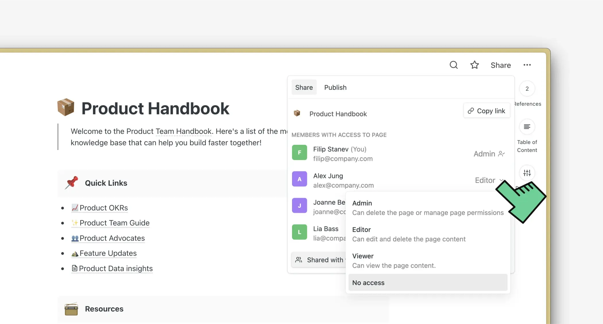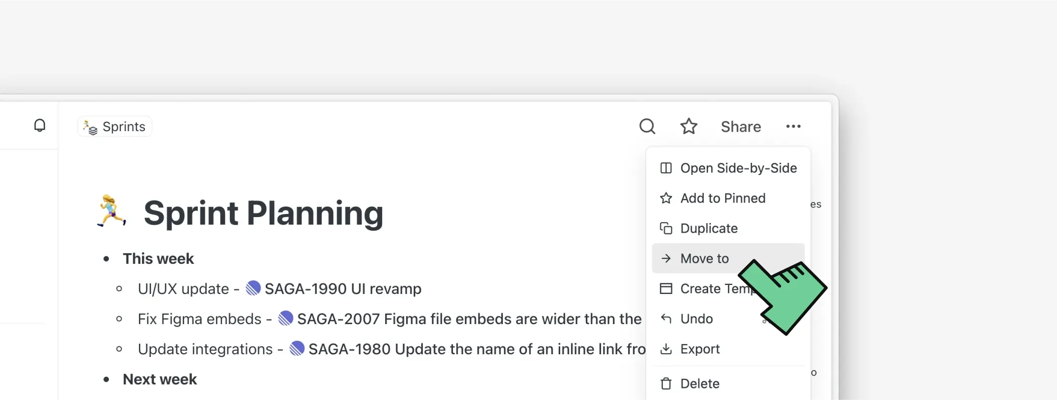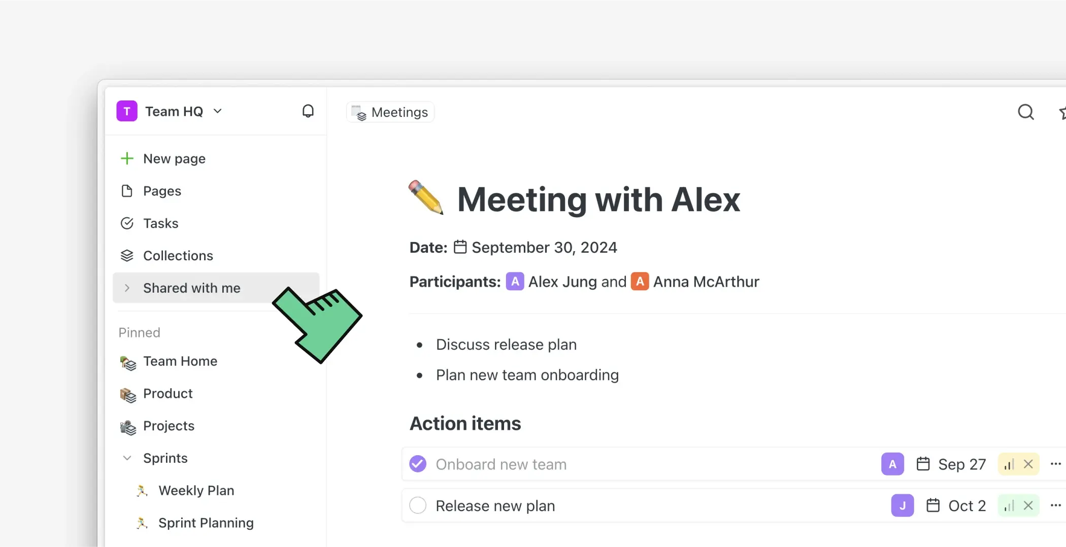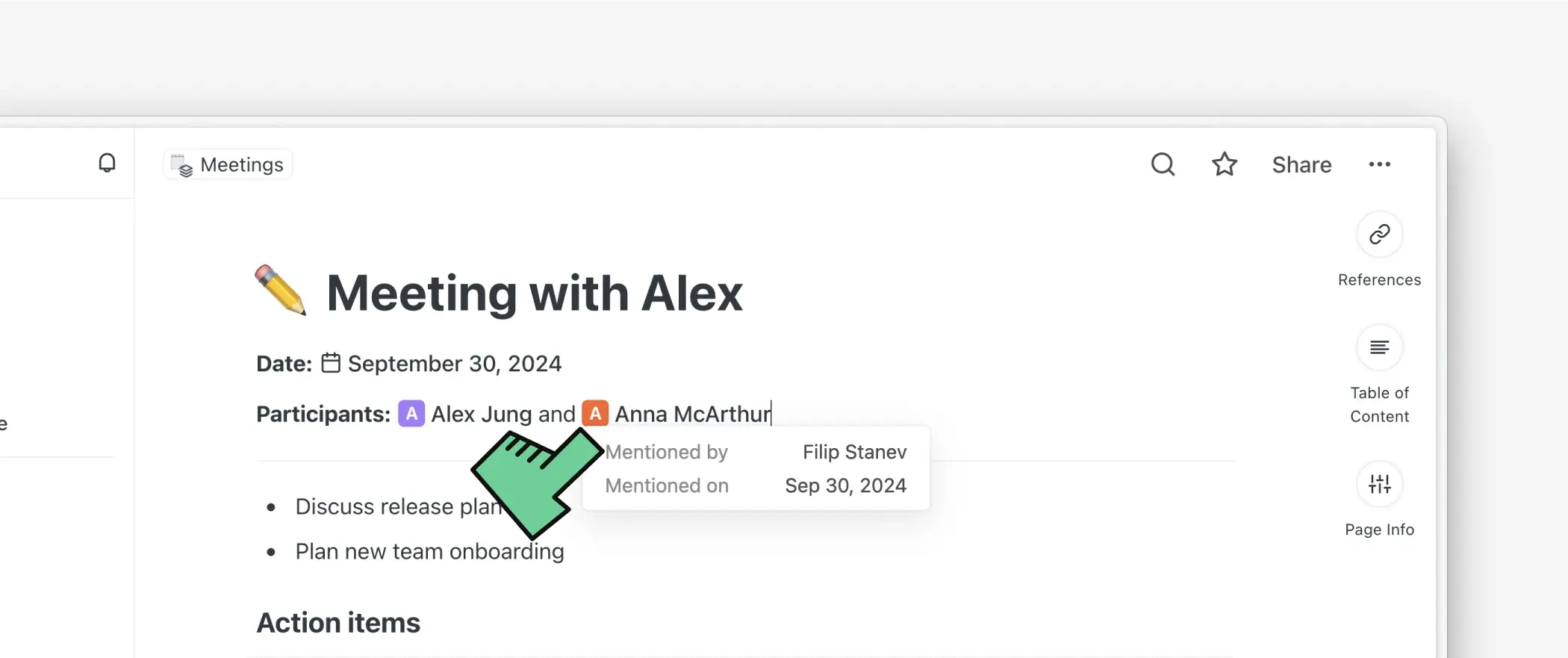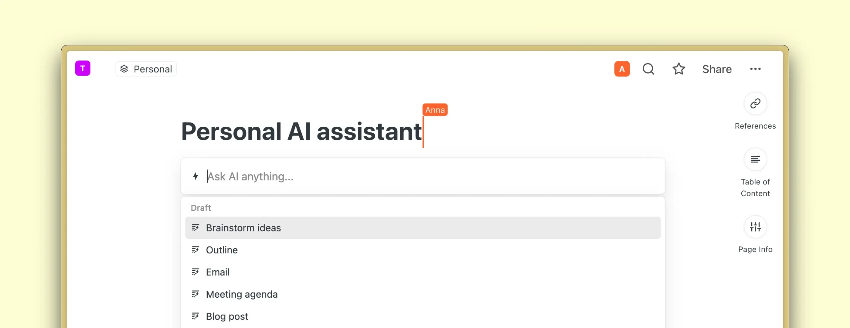 Hemos agregado una nueva sección de favoritos personales en la barra lateral que solo es visible para ti. Esto es útil para equipos donde diferentes miembros quieren tener acceso más rápido a los documentos importantes para ellos.