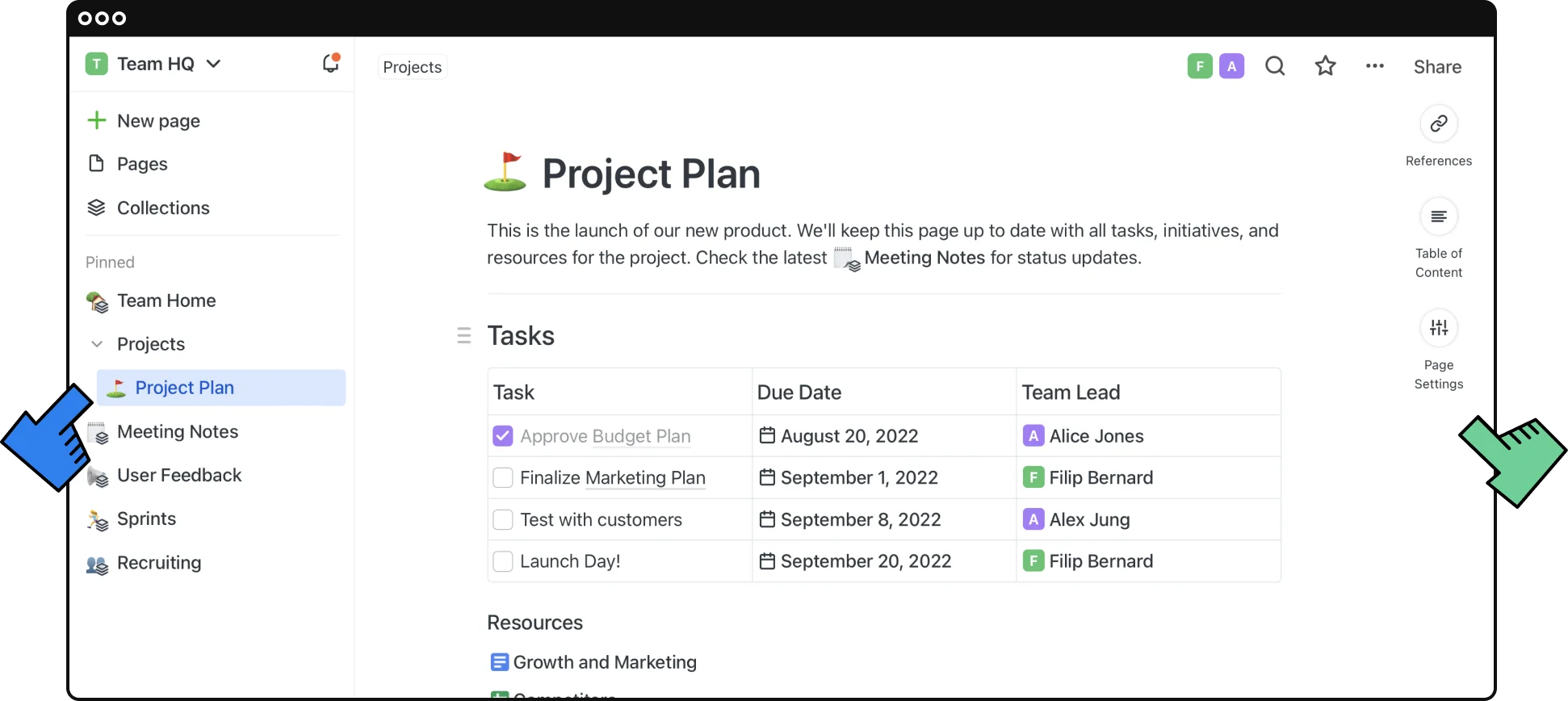 We use our own product daily for everything from sprint planning, tasks, meeting notes, collecting user feedback, and feature refinement writeups.