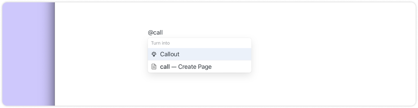 - Utilisez le menu de saisie automatique et tapez @callout ou /callout dans l’éditeur et sélectionnez Callout dans le menu déroulant.
