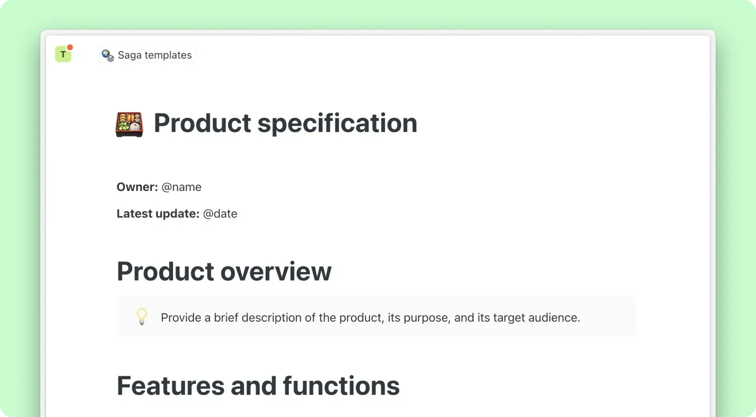 Pour vous aider à créer et maintenir vos spécifications produit, accédez à notre modèle gratuit. Il est structuré pour vous guider dans la documentation des fonctionnalités, des fonctions et des exigences de votre produit, facilitant ainsi pour vous et votre équipe d’assurer la clarté et la cohérence dans vos workflows de développement produit.