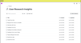 Ajoutez et assignez facilement des tâches dans vos documents de sprint. Vos coéquipiers auront un accès direct à toutes les recherches, feedbacks utilisateurs et spécifications produit liés - pour que tout le monde soit aligné.