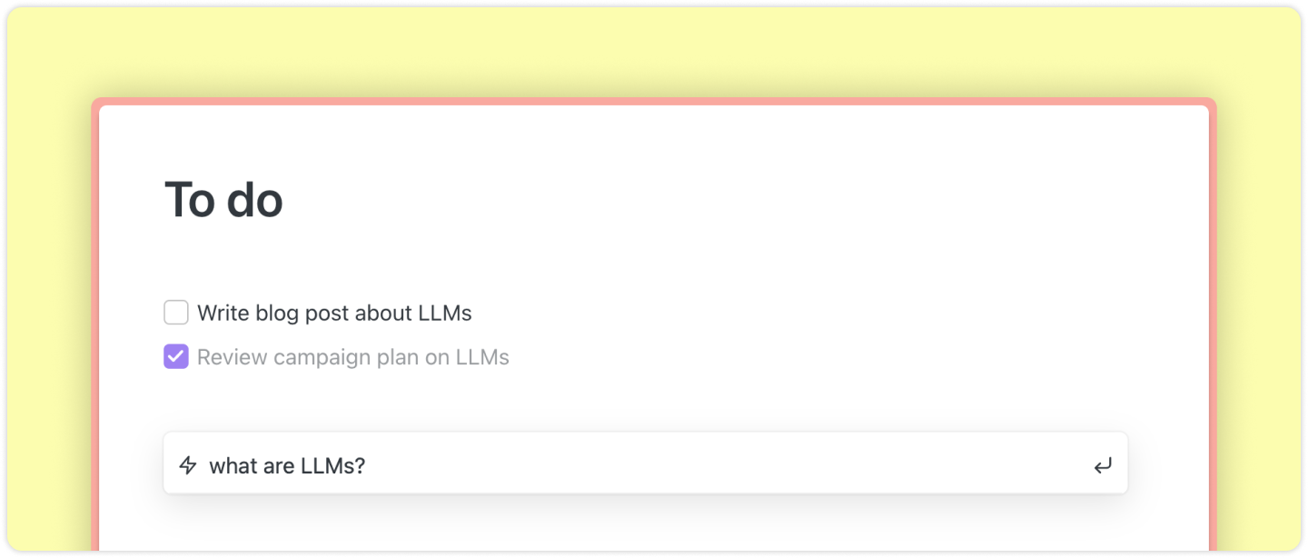 Simply type @ or / in Saga and select Ask AI to find the information you need. This feature is applicable to any industry, technical matters, or personal interests.