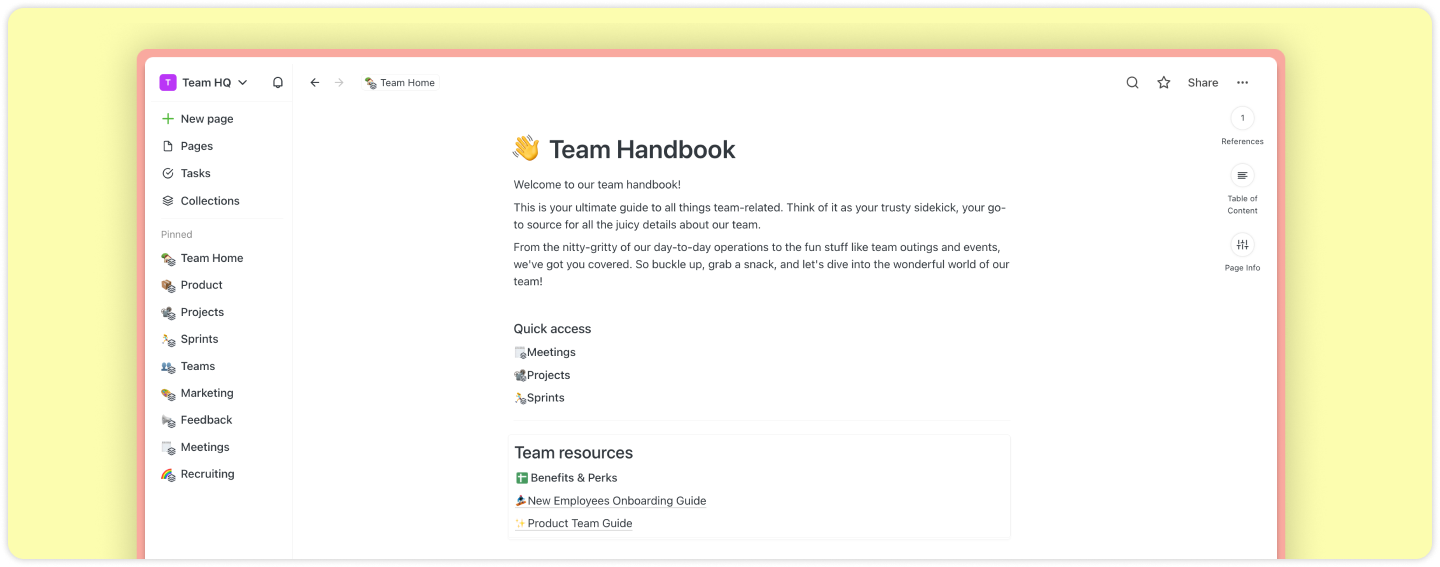 Saga is built to help you be productive both when jotting down a quick meeting note and when crafting longer documents. It’s particularly useful for connecting different concepts related to a topic or project and when you want to navigate between them quickly.