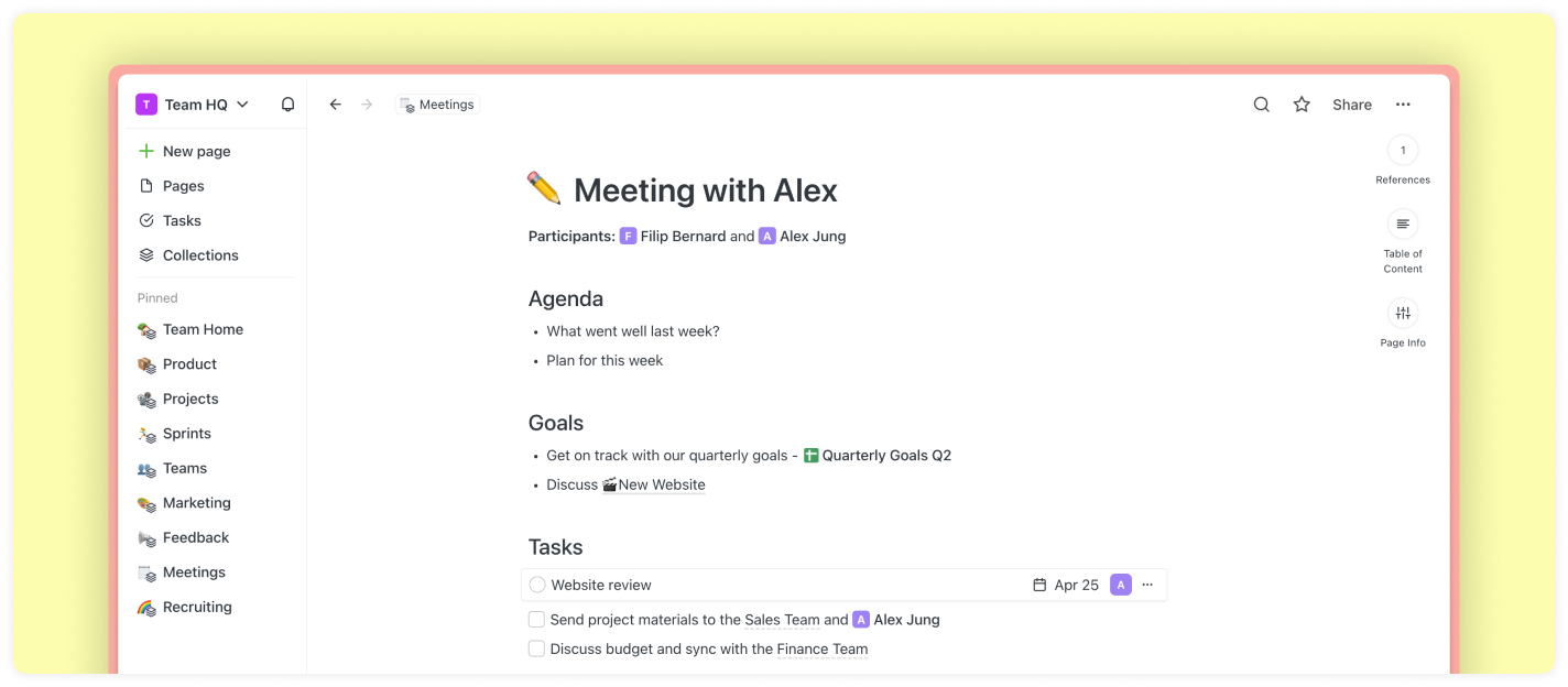 Saga is built to help you be productive – both when jotting down a quick personal note and collaborating on longer documents with your team.