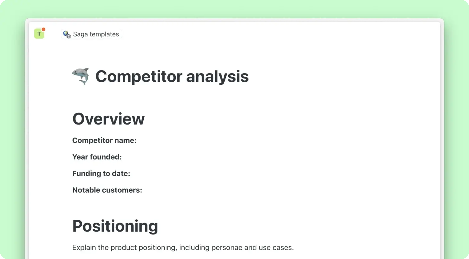 Para ajudá-lo a criar e manter suas análises de concorrentes, acesse nosso modelo gratuito. Ele é estruturado para guiá-lo na documentação dos pontos fortes, fracos e estratégias de seus concorrentes, facilitando para você e sua equipe garantir clareza e consistência em seus fluxos de trabalho de pesquisa de mercado.