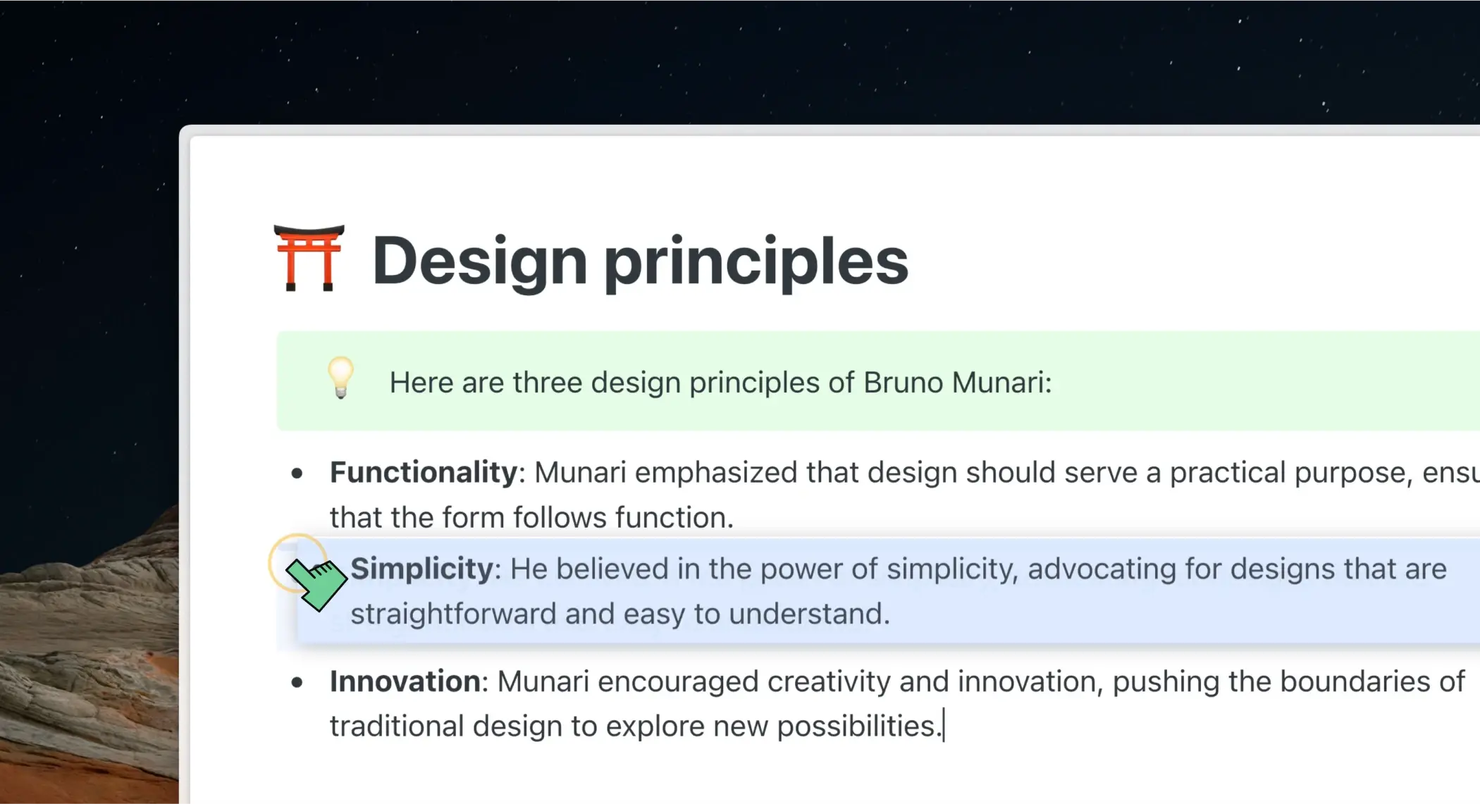 Lançamos mais de 80 correções, melhorando listas, copiar e colar, tabelas, destaques, blocos aninhados e respostas do Saga AI. Nosso foco permanece em oferecer edição suave e rápida e lançar fluxos de trabalho ainda melhores para integrar IA em seu espaço de trabalho.