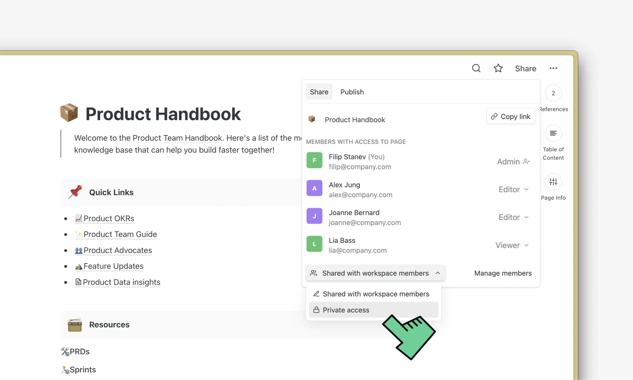 Estamos animados em anunciar o lançamento de dois novos recursos: páginas privadas e permissões de compartilhamento no nível da página. Esses recursos darão a você controle preciso sobre quem pode editar e visualizar suas páginas.