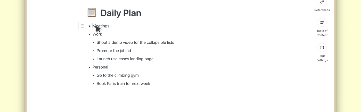 You can now keep your pages organized by using collapsible lists. Collapse and expand any bulleted list to hide or show nested items.